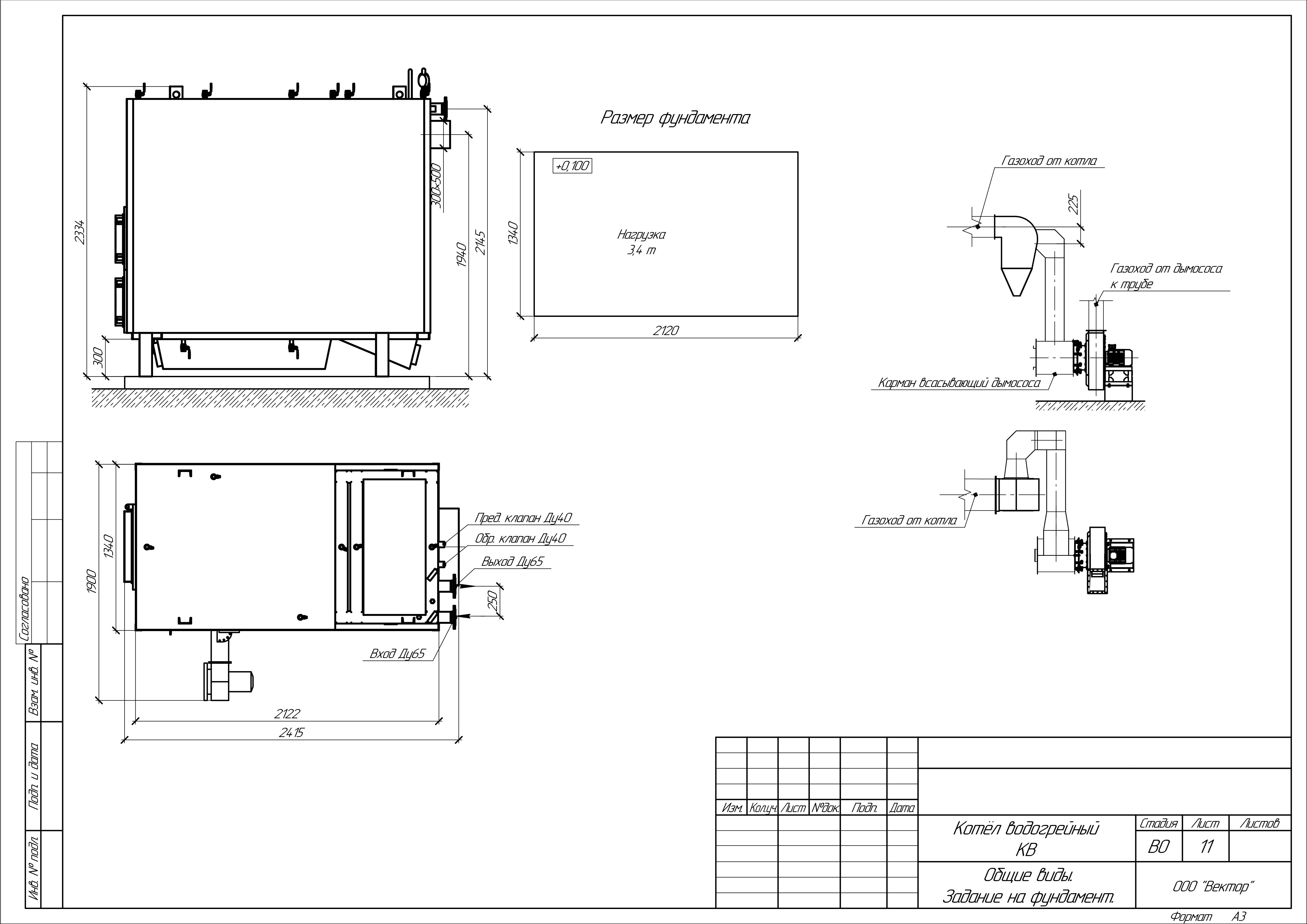 Масса котла (без воды): 3850 кг